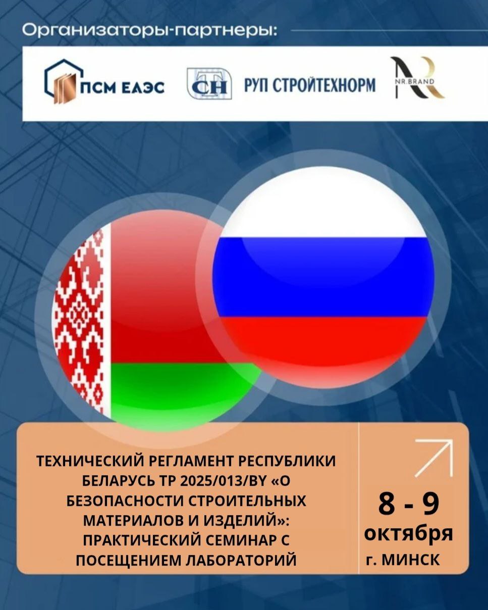 Тема: Вступивший в силу 8 сентября новый технический регламент Республики Беларусь ТР 2025/013/BY «О безопасности строительных материалов и изделий» Где: Республика Беларусь, г. Минск Когда: 8-9 октября 2025 года