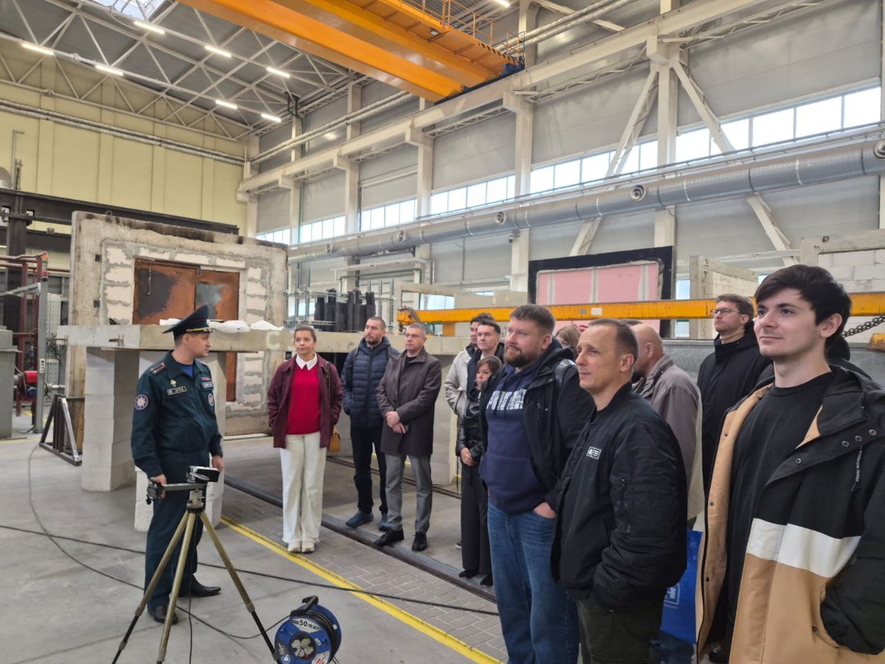Участники побывали на полигоне МЧС Республики Беларусь, где ранее проходили масштабные эксперименты. Для них провели демонстрацию испытаний, в ходе которой проверяли огнестойкость сэндвич-панелей и кабельных проходок. Гостям показали современное испытательное оборудование. Среди которого — уникальная печь для тестирования огнестойкости большепролетных перекрытий (пролетом до 12 метров) и ряд стендов для определения огнестойкости и класса пожарной опасности строительных конструкций.
