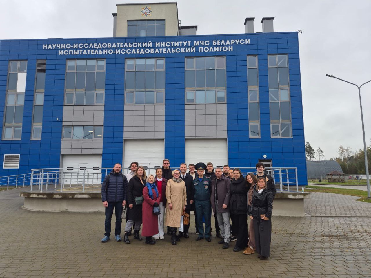 Участники побывали на полигоне МЧС Республики Беларусь, где ранее проходили масштабные эксперименты. Для них провели демонстрацию испытаний, в ходе которой проверяли огнестойкость сэндвич-панелей и кабельных проходок. Гостям показали современное испытательное оборудование. Среди которого — уникальная печь для тестирования огнестойкости большепролетных перекрытий (пролетом до 12 метров) и ряд стендов для определения огнестойкости и класса пожарной опасности строительных конструкций.
