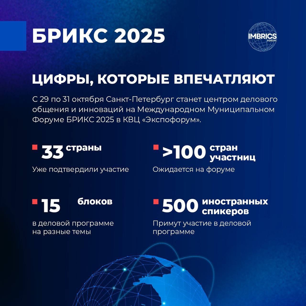 Международный Муниципальный Форум БРИКС 2025 пройдет в Санкт-Петербурге с 29 по 31 октября – одно из ключевых событий в сфере межмуниципального и международного сотрудничества